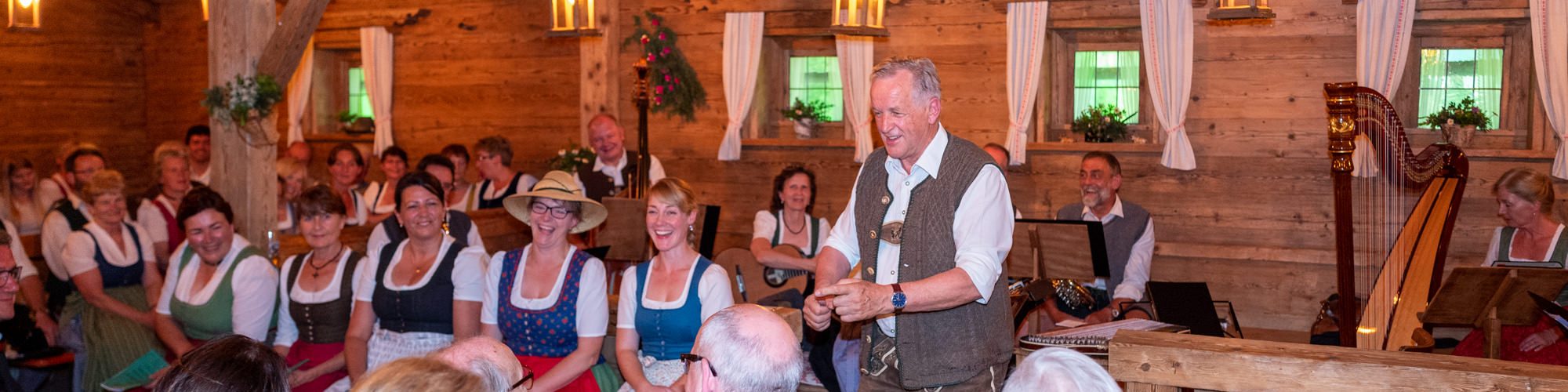Die Besucher des alpenländischen Singspiels „Almsommer“ von Hans Berger durften sich für dieses Musikerlebnis auf die Reise in Bergers schöne Heimat im Auerbachtal machen. Auf der Alm seiner Familie im Sudelfeld erzählte Hans Berger mit seinen Musikern in bildhaft, nahezu greifbar wirklichen Geschichten von den Bergen und Tälern, aus denen der Komponist und Musiker stammt. Sie sangen und musizierten vom Almauftrieb bis hin zum Almabtrieb, vom Leben fernab der Ställe im Tal.