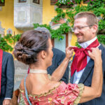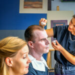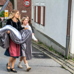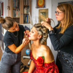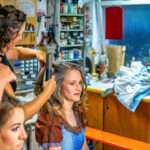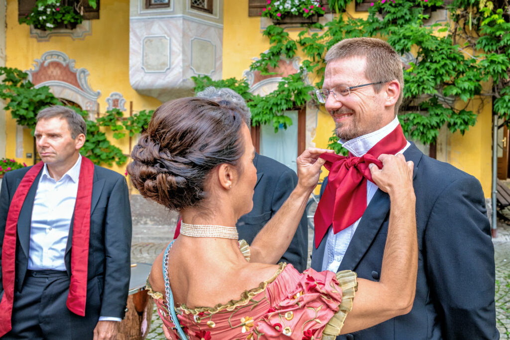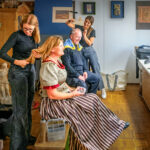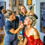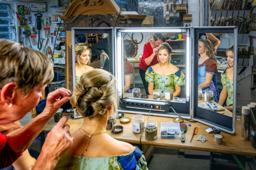 Doch bevor der erste Satz gesprochen wurde, lag hinter den Beteiligten bereits ein langer Tag voller Emotion, Konzentration und akribischer Vorbereitung. In den improvisierten Maskenräumen in der Werkstatt des Kirchenmalers Michael Pertl direkt am Marktplatz herrschte am späten Nachmittag ein emsiges Treiben: Haare wurden kunstvoll geflochten, Schminke aufgetragen, Requisiten zurechtgelegt und letzte Handgriffe an Kostümen und Krawatten vorgenommen.