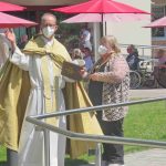 Dreigeteilt und auch ohne Prozession einzigartig und wohl einmalig war der heurige Festtag Fronleichnam in der Pfarrgemeinde „Mariä Himmelfahrt“. Aus einer Anregung des Pfarrgemeinderates heraus entstand die Idee, drei Stationen mit jeweils eigenständigem Charakter vorzubereiten. Pfarrer Klaus Hofstetter, der liturgische Dienst sowie Günter Kraus als ordnungsschaffender Kirchenschweizer kamen gemäß der Fronleichnamsbotschaft mit dem Allerheiligsten den Gläubigen im besten Sinne entgegen.