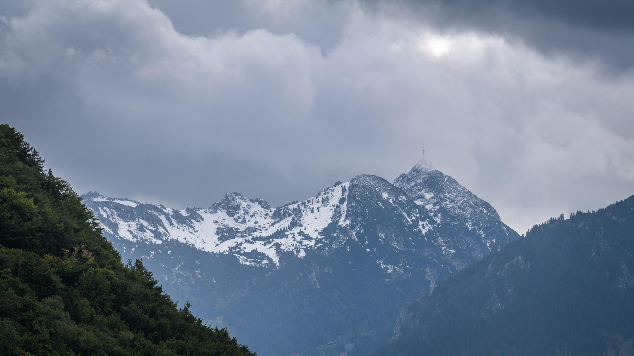Blick vom Samerberg zum Wendelstein: der erste Schnee