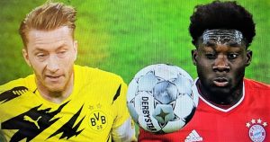 Bereits der erste Angriff der Dortmunder führte zum 1:0 für die Gäste. Torschütze Erling Haaland. Und schon in der 9.Minute stand es 2:0 für Dortmund, wieder durch Haaland. Dann aber zweimal Lewandowski, der in der 26. Minute auf Vorlage von Leroy Sané den Anschlusstreffer erzielte und in der 44.Minute durch Elfmeter nach einem Foul an Kingsley Cioman den Ausgleich.