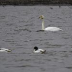 Erfreulicherweise war auch ein Singschwan relativ nahe gekommen und drei Brandgänse tummelten sich im Vordergrund.