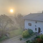 Aufgrund des Morgennebels kam es zum Wochenstart in Prien-Prutdorf nicht zu einem hellen Sonnenaufgang – dennoch aber machte sich die ganze Sonne sichtbar und setzte sich gegen den Nebel durch. Unsere Aufnahme zeigt die “Nebel-Sonne” mit einer ganz besonderen Stimmung.