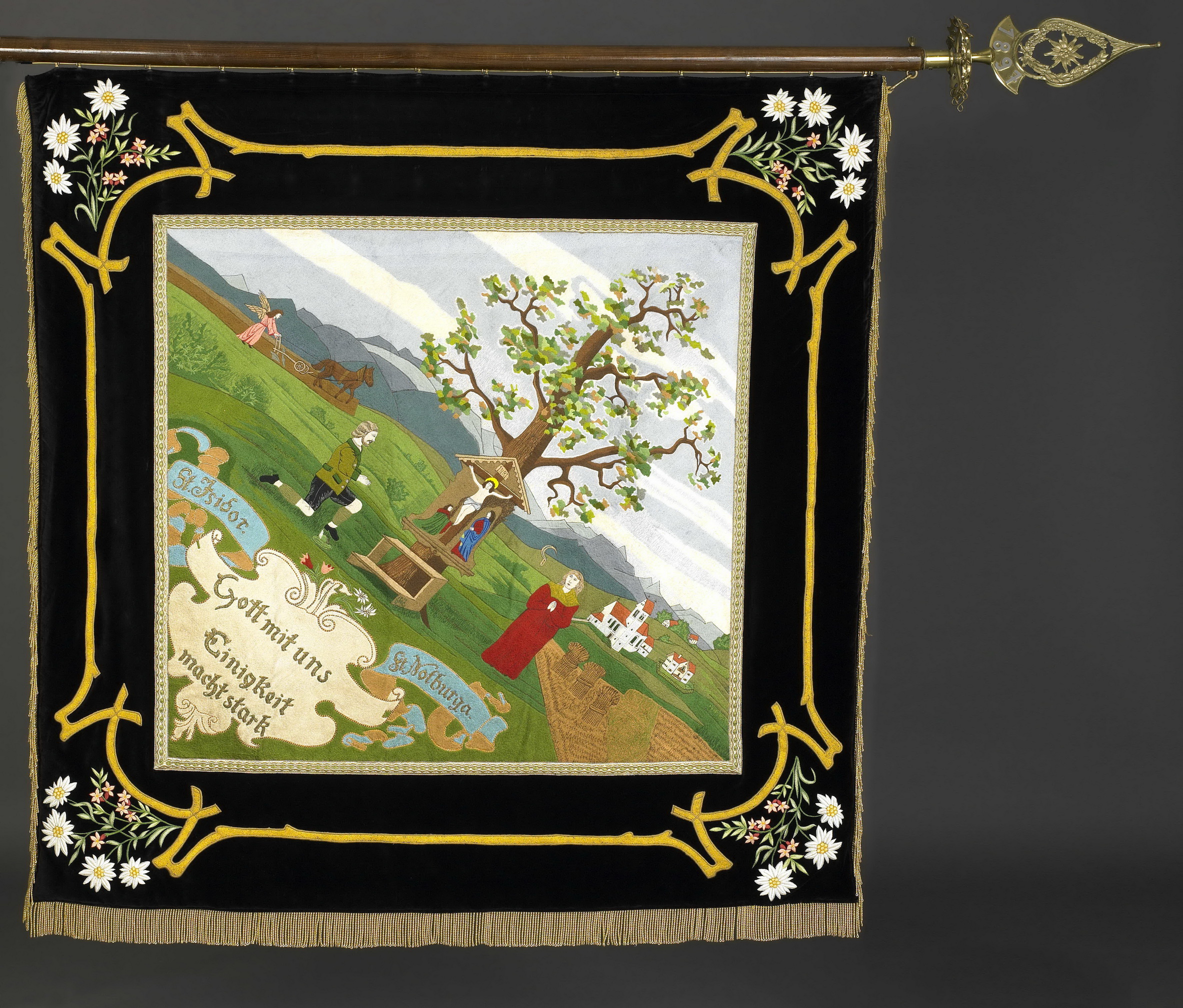 Fahne GTEV Atzing mit Hl. Isidor und Hl. Notburga