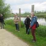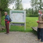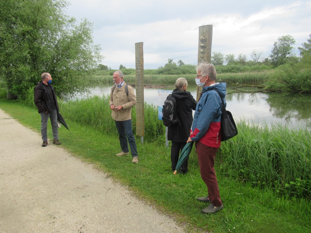 Nachdem sich die zwei Neuen beim Kiosk vor dem Rimstinger Bad kurz vorstellten und über die geologische Entstehung und Entwicklung des Chiemsees informierten, ging es an der Prien entlang bis zur Rialto-Brücke und dann zur Prien-Mündung. Bei mehreren Stopps erfuhr man von den neuen Naturführern viel Wissenswertes über die Tierwelt im Mündungsgebiet der Prien. Die beiden erzählten daneben auch launige Geschichten über berühmte Personen vergangener Zeiten, die sich am Chiemsee niederliessen und beantworteten Fragen. Groß war z.B. die Nachfrage zu den erstaunlichen Aktivitäten der Biber, die hier seit einigen Jahren leben und die schon jede Menge Weiden zu Fall gebracht haben.