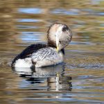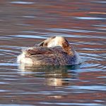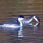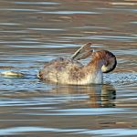 • Auch das Ohrentaucherpärchen zeigt sich wieder. Sie scheinen sich über die nächsten Schritte nonverbal abzustimmen. Denn anschließend wird abwechselnd Gefieder geputzt oder getaucht.