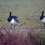 • Vom gegenüberliegenden Ufer schauen Nonnengänse sich das Treiben auf dem Wasser an.