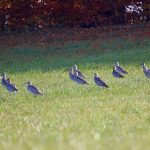 • Auf der Fahrt nach Seebruck fliegt ein großer Schwarm Brachvögel auf die neben der Straße befindlichen Wiesen. Da heißt es im Auto bleiben und von Ferne diese seltenen Vögel beobachten. Sie haben eine hohe Fluchtdistanz und fliegen bei der kleinsten Störung auf und meisten auch davon.