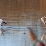 • Zum Abschluß des Tages unternehme ich einen Spaziergang zum Beobachtungsturm Lachsgang. Ich komme gerade noch rechtzeitig, um einen jungen Seeadler zu sehen, der sich auf dem Rückzug ohne Beute befindet. Er hat viel Panik unter den Wasservögeln erzeugt. Aber langsam kehrt wieder Ruhe ein.