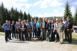 Nach einer kurzen Einführung und Vorstellung des Nationalparks im Hans-Eisenmann-Haus ging es zu einer Exkursion nach Finsterau. Hier bekamen die Ausschussmitglieder ausführliche Infos zur grenzüberschreitenden Kooperation. Denn Pavel Hubený, der Leiter des Nationalparks Šumava, hatte sich Zeit genommen und begleitete die Gruppe ab dem Grenzübergang Buchwald über den Siebensteinkopf bis zur Reschbachklause. „Die Zusammenarbeit zwischen beiden Nationalparken ist sehr gut“, erklärte Hubený. „Bei regelmäßigen Treffen informieren sich beide Verwaltungen über aktuelle Geschehnisse in den Schutzgebieten.“ Hubený erklärte, wie und in welchen Bereichen auf tschechischer Seite der Borkenkäfer bekämpft wird, welche Infrastruktur bei Wander- und Radwegen vorhanden ist und welche Monitoringprojekte, wie zum Beispiel zum Schutz des Auerhuhns, beide Verwaltungen gemeinsam durchführen.