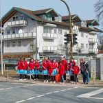 Eigentlich war man in der Unsinnigen-Donnerstags-Hochburg Prien a. Chiemsee froh, dass Corona Erleichterungen und ein paar Vorbereitungen einen frohen Faschingstag erwarten haben lassen. So waren gerade die Hauptlätze hergerichtet mit räumlichen Verzierungen und mit der Möglichkeit zu ausgelassenenen Stimmungen. Dies waren wie in all den vielen Jahren vorher auch das Priener Rathaus, das Haus des Gastes, die Marien-Apotheke und auch die Volksbank-Raiffeisenbank. Der Vorsicht geschuldet wurden Auflagen und Tests eingehalten, die Stimmung konnte steigen. Als die Meldungen vom Angriffskrieg auf die Ukraine um sich griffen, war man natürlich nachdenklich, aber dennoch wollten Chefs und Vorbereiter den Leuten das eh schon corona-sparsam gewordene Feiern nicht vermiesen. Am Priener Rathaus zeigte sich im Freien die Nachwuchsgarde der Prienarria unter der Leitung von Gabi Oberloher. Prinzessin Antonia I. und Prinz Markus I. zeigten den Prinzenwalzer und Bürgermeister Andreas Friedrich (als Kapitän eines nicht-untergehenden Schiffes) sowie sein Rathaus-Personal waren überaus dankbare Zuschauer.