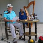 Viola Rehbach umrahmte die Lesung musikalisch auf der Harfe.
