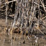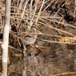 Auch wenn man nur Enten auf dem Wasser sieht, sind es oft doch viele unterschiedliche Arten beim genaueren Hinsehen. So auch die Brandgänse aus dem hohen Norden, welche an der Kiesinsel Rast machen. Auch am Gewässerrand gibt es einiges zu entdecken. Schaut man genauer hin, so ist der schlammige Schilfrand für einige bedrohte Arten ein Festbankett. Die Wasserralle lebt in diesem Habitat ganzjährig, während die vom Aussterben bedrohte Bekassine hauptsächlich ein Wiesenbrüter ist. Aber seine Tarnung ist auch im Schilf überzeugend.