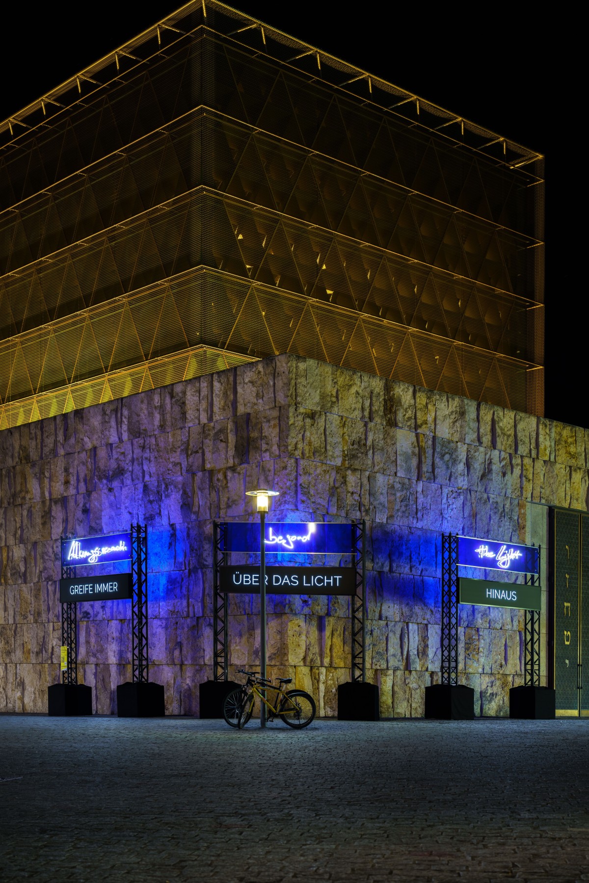 “Always reach beyond the light” heißt die Installation von Jan Kuck an der Münchner Synagoge. Foto: LEROT Leon Greiner