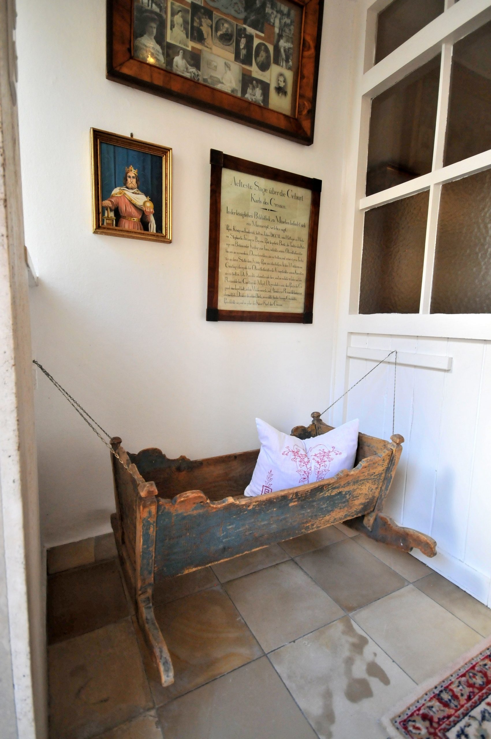 Wiege von Karl dem Großen in der Reismühle bei Gauting, Bayern, Deutschland