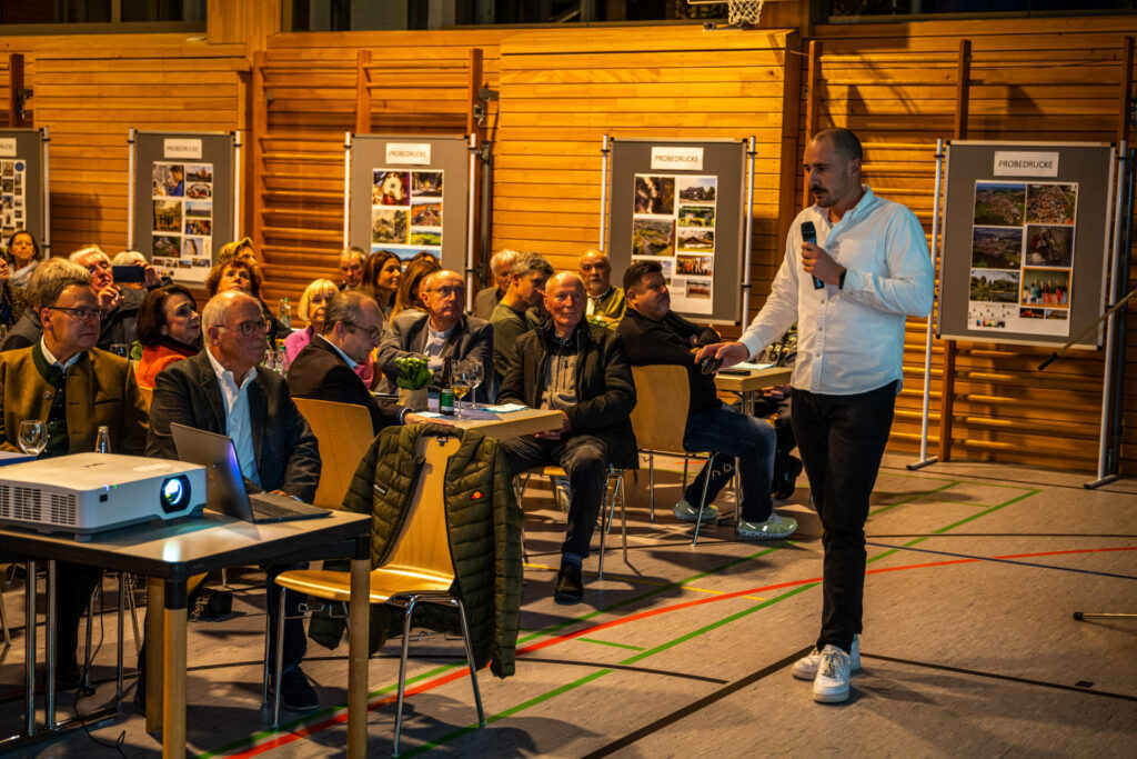 Redaktionsleiter Rupert Rußwurm präsentiert in der Ameranger Gemeindehalle das neue Heimatbuch