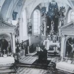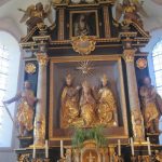 In der Mitte des Hochaltars zeigt eine Schnitzgruppe der Krönung Mariens durch die heilige Dreifaltigkeit (um 1520). Von 1655 bis 1959 befand in der Mitte des Altares das Wallfahrtsbild, „Der leidende Heiland“, heute –leider- seitlich in der Kirche.