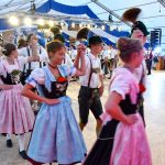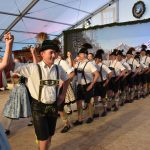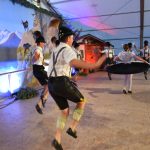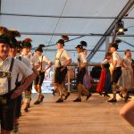 Den Anfang auf der Bühne machte die Chiemgauer Gaujugendgruppe, die auch den weiteren Abend ihr Können zeigte. Sie zogen von der Bühne dann über die Treppen durch das Festzelt und ihnen folgten die weiteren Gäste auf die Bühne. Es war ein schönes Bild vor der gemalten Kulisse des Gebirges mit den Gamsen und dem augenscheinlichen Spaß an dem Gemeinschaftsgefühl beim Tanzen.
