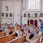 Abschließend erläutert der Gemeindereferent noch die Prozessionslampen von der Bruderschaft vom Guten Tod (werden heute noch bei Beerdigungen mitgetragen) sowie das Pestkreuz, das aus dem Jahr 1603 stammt. Der Hochaltar ist der ehemalige frühbarocke Hochaltar in der Streichenkirche, so dass der Altar rund hundert Jahre älter ist als die Kirche selbst.