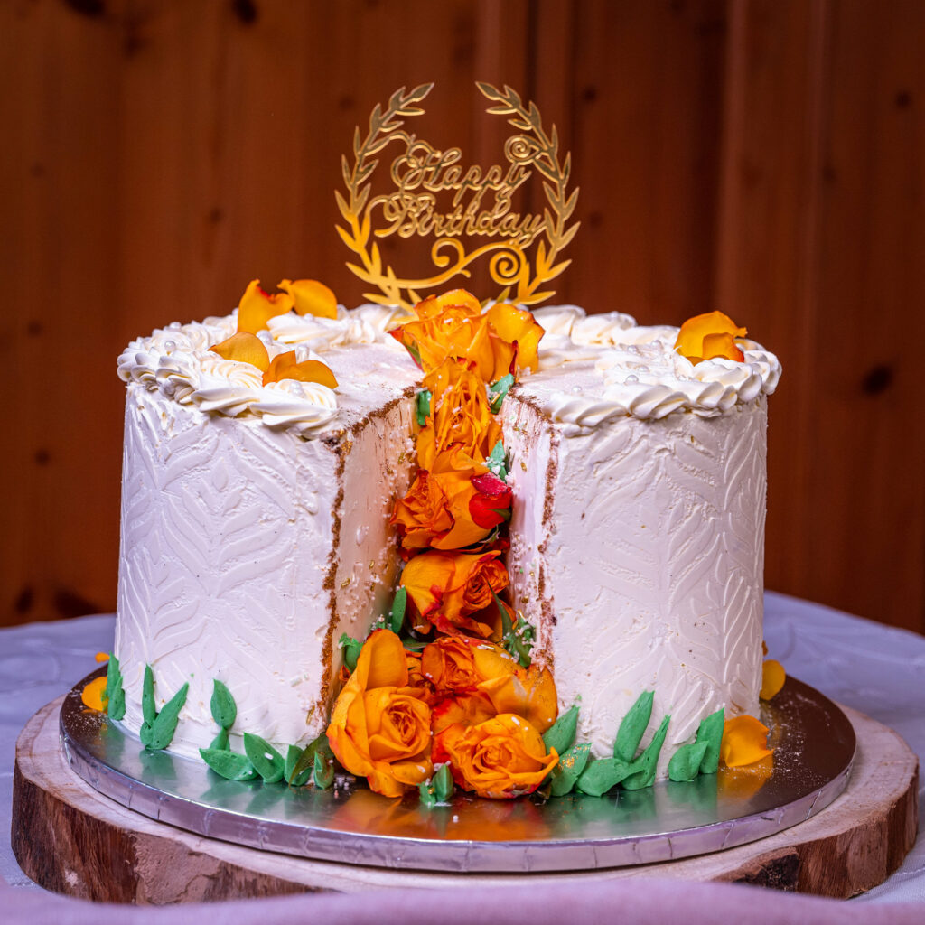 Eine Geburtstagstorte von Francesca D’Emanuele mit echten Rosen