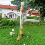 Der Bernauer Skulpturenweg findet heuer zum siebten Male statt, dieser ist nach Aussage der Künstlerin Corinna Brandl alle Jahre größer und interessanter geworden. Auf die Frage, ob sie ein Lieblingsstück hat, sagte die Organisatorin: „All das, was zu entdecken ist, sprüht vor Ideen, Farben und Freude, besonders einfallsreich finde ich die in einem Baum hängenden Tassen samt Schrank mit der deutlichen Frage, ob hier noch alle Tassen im Schrank sind, sowie das von grüner Natur umrahmte Werk `Kinderseele`“. Corinna Brandl erläuterte mit ihrer Kunstkreis-Kollegin Dorothea Tielemann den Besuchern der Vernissage das in der Natur begehbare Kunstwerk. Die Eröffnung nahm vorher Zweiter Bürgermeister Gerhard Jell vor. Er und seine Gemeinderätin und Kulturreferentin Michaela Leidel hatten allen guten Grund dem KunstKreis, den Gast-Künstlern und vielen Helfern zu danken. Michaela Leidel, die sich in der Gemeinde Bernau u.a. um Termine und Koordinierung zu Kultur- und Veranstaltungsthemen kümmert, bedankte sich ganz besonders beim gemeindlichen Bauhof, der sich stark bei der Aufstellung der Kunstwerke einbrachte. Ein weiterer Dank galt Rita Fitzner von der Gemeindeverwaltung, sie sorgte für die Vernissage-Getränke.