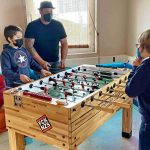 Gerrit Regul freut sich, dass das Offene Zusammentreffen im und am Jugendtreff wieder leichter wird und dass zuletzt viele Verbesserungen in den Innenräumen wie dem Aufenthaltsraum, in der Küche und bei den Toiletten vorgenommen werden konnten. Regul, der selbstständiger Handwerker ist, gleich um die Ecke wohnt und bei den Arbeiten von den Jugendlichen unterstützt worden ist, nennt vor allem die neuen Möbel und die Farbgebung als Gewinn. So werden die gemütliche Sitzecke mit großen Sitzkissen und gemütlichem Sofa sowie die kleinen, aus Getränkekisten gebastelten Tische, der Billardtisch, der Kicker, ein Air-Hockey und die Musikanlage gut und gerne angenommen. Von Vorteil ist, dass die meisten Möbel und Einrichtungsgegenstände wetterfest sind und bei schönem Wetter auch im Freien genutzt werden können. Eine klare Hausordnung sieht vor, dass es Snacks und Getränke sowie WLAN, aber keinen Alkohol und keine Raucherlaubnis gibt, ergänzend sagt Regul: „Ursprünglich war der Jugendtreff für 12- bis 18-Jährige, inzwischen versuchen wir auch schon 10-Jährige einzuladen, damit sie sich der Gemeinschaft anschließen können“. Der komplett barrierefreie Jugendtreff, der jeden Mittwoch und Donnerstag von 16.30 Uhr bis 20 Uhr offen ist, kann auch außerhalb dieser Zeiten und besonders am Wochenende für Partys und Geburtstagsfeiern zum Pauschalpreis von 25 Euro angemietet werden.