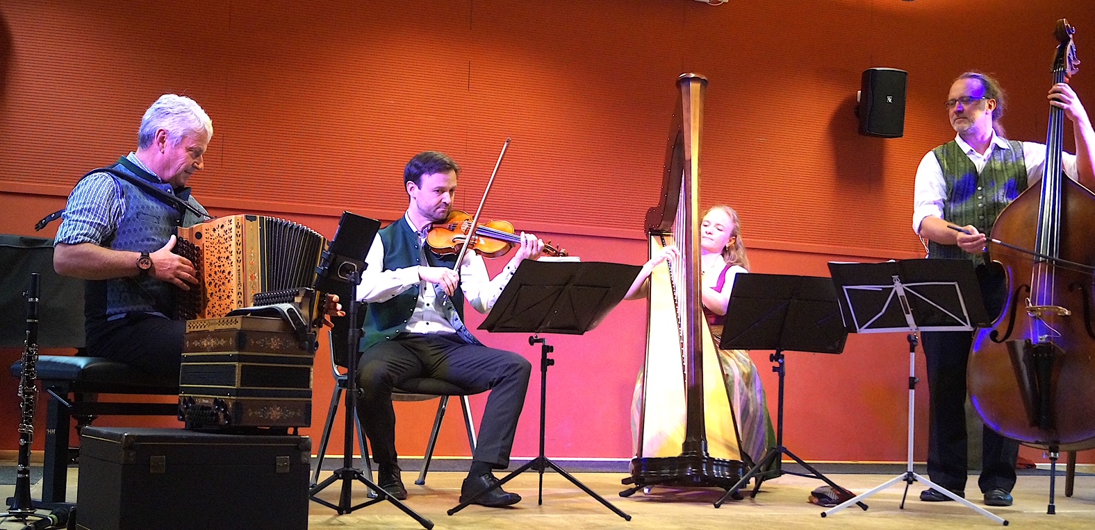 Versprühten beste Laune bei Volksmusik aus verschiedenen Ländern: die Salonboarischen mit Hermann Huber (von links), Zoltan Laluska, Verena Meurers-Zeiser und Ingo Nagl.