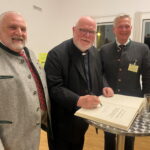BU Diözesan2: Kardinal Reinhard Marx (Mitte) noch im Beisein von Bürgermeister Richard Richter (rechts) und DJK-Ehrenpräsident Werner Berger (links) in das Goldene Buch der Marktgemeinde Bruckmühl ein.