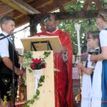 Ein Bilderbuchkulisse, auch zur Freude und Begeisterung zahlreicher Zaungäste, erlebten die gastgebenden „DuBV´s“ beim grandiosen Burschenfest am Pfingstsonntag. Eine große Gemeinschaft aus 31 Dirndl- und Burschenvereinen, Jungbauernschaften, Landjugendgruppen und Ortsvereinen füllten nicht nur das Zelt, sondern bereicherte das bunte Bild beim Kirchenzug und abschließenden Festzug durch das nördliche Dorf der Gemeinde Bad Feilnbach. Die drei Zuggruppen wurden von der Auer Musi, der Irschenberger Musi und von der Trachtenkapelle Dettendorf angeführt. Letzterer Kulturträger umrahmte zusammen mit der jungen Sängerin Elisabeth Ranner und Sepp Dostthaler an der Gitarre den Festgottesdienst. Fasziniert von der malerischen Szene vorm Feldaltar im großen Obstgarten der Familie Hormeier war Pater John als Zelebrant der Messfeier. Der Geistliche der Pfarrei St. Martin Au, Kematen-Dettendorf wertete das Zusammentreffen als Besonderheit zu den Anlässen Pfingsten und „DuBV-Jubiläum. Pfingsten stehe für Weitergabe von Traditionen und Gemeinschaften. Diese Werte pflege der Dirndl- und Burschenverein seit 22 Jahren und sei, wie im Evangelium in der Erfüllung mit den Heiligen Geist beschrieben, sichtbares Symbol für Zusammenhalt und Gemeinschaft. Der Verein sei zum Ausdruck des kulturellen Lebens im Ort geworden. Vereine seien wichtige Teile gelebten Glaubens, wie der Geistliche mit der Bitte „Traditionen und Gemeinschaften lebendig zu halten“ abschließend betonte.