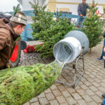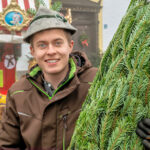 Weihnachtsbaumkauf mit Handarbeit: Beim Samerberger Dorfadvent gehörte auch der Christbaumverkauf dazu. Vor Ort werden die frisch ausgesuchten Bäume direkt eingenetzt – bereit für den Heimweg und fürs Fest daheim.