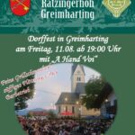 Am heutigen Freitag, 11. August laden die Greimhartinger Trachtler vom GTEV “Ratzingerhöhe” zu ihrem Dorffest auf dem Platz vor dem Gemeindehaus ein. Beginn ist um 19 Uhr, es spielt die Musik “A Hand vui”.