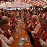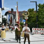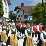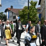 Der Höhepunkt war jedoch der Gaufestsonntag, der mit dem Festgottesdienst in der Pfarrkirche startete. Trachtenpfarrer Josef Tiefenböck stellte in seiner Predigt heraus, dass Brauchtum und Tradition noch immer die tragenden Säulen unter dem bayerischen Himmel sind. Und so ließ er es sich nicht nehmen mit Stadtpfarrer Alexander Aulinger mit einer „Hoibe“ „auf eine Gott gesegnete Zukunft der Trachtlerinnen und Trachtler“ anzustoßen.