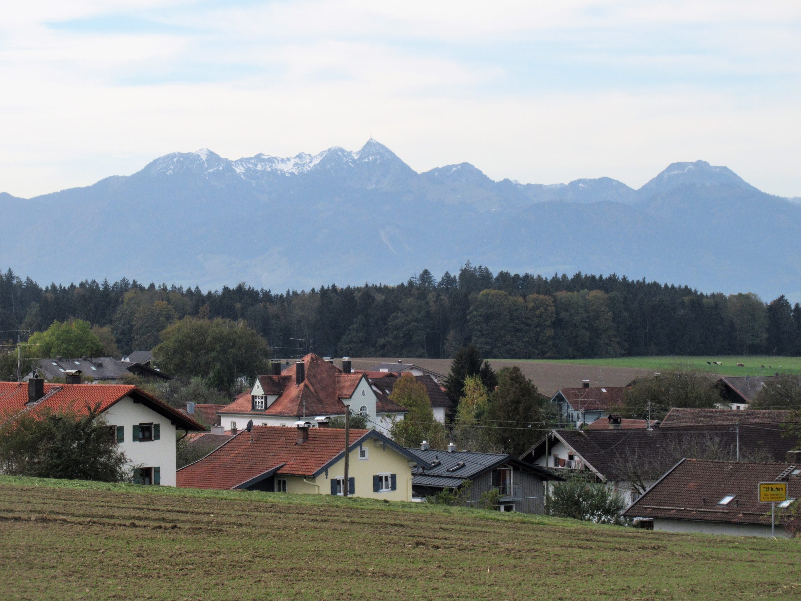 am Kapellenweg: Blick nach Söllhuben, dahinter der Wendlstein