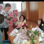 Foto: privat – Frau Eder gratuliert ihremGruppenmitglied Fatmus Gashi zum Geburtstag und verabschiedet sie gleichzeitig, da sie in Kürze umzieht. Weiter zu sehen ist Herr Fritz Gebhardt-Seele.