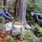 Nach kurzer Besprechung, wohin der Baum fallen soll, setzte Bene Langl die Fällkerbe. Mit der Wiegesäge starteten Georg Plank und Michael Schweiger als erstesTeam, es folgten Bürgermeister Christian Glas und Trachtenvorstand Siegfried Hundhammer. Auch der stellvertretende Bürgermeister Hans Plank und Burschenvorstand Peter Pawolleck zogen mit Muskelkraft an der Hand-Säge. Nachdem der Baum so fachmännisch gefällt war, wurde er vor Ort noch geschepst und von seiner Rinde befreit. Christian Staber als Verwaltungsleiter des Pfarrverbands begutachtete die Arbeiten. Die fleißigen Waldarbeiter hatten den Wald noch nicht lange verlassen, da wurde der Baum schon von Priener Dieben gestohlen. Die Priener haben nunmehr nach gutem, alten Brauch die Aufgabe, auf den zukünftigen Eggstätter Maibaum gut aufzupassen, ihn für das Aufstellen vorzubereiten und auch Hand anzulegen, wenn es zum Aufstellen geht. Geplant ist, dass der Maibaum am Samstag, 30. April in Eggstätt gemeinschaftlich und fröhlich aufgestellt wird.