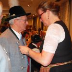 Ganz oben darauf stand Peter Bodner. Der 94-Jährige ist den Panger Trachtlern seit 75 Jahren treu und trat gleich nach dem zweiten Weltkrieg bei. Heute im österreichischen Niederndorf/Tirol zu Hause, ließ er sich an diesem Abend extra von seinem Sohn nach Rosenheim fahren, um die Ehrung bei guter Laune und unter Applaus im voll besetzten Saal entgegen zu nehmen. Im Beisein der Vorstände weiterer Ortsvereine aus dem südlichen Stadtgebiet, von Ehrenvorstand Andreas Gartner sowie vom stellvertretenden Vorsitzenden des Inngau-Trachtenverbands, Markus Kronberger, genoss Bodner sichtlich die Unterhaltung durch die Plattlergruppen. Für die passende Musik sorgte die Wasner Musi unter Leitung von Hans Rutz.