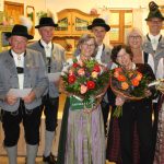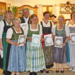 Anschließend wurden von Vorstand Gust Grundner, stv. Vorstand Georg Hanslmeier sowie der Kassierin Elisabeth Reindl und Schriftführerin Margit Holzner 46 Mitglieder mit einer Urkunde geehrt, die drei, vier und fünf Jahrzehnte dem Verein als passive Mitglieder die Treue gehalten haben. Mit Urkunde und Anstecknadel wurden zum Dank für ihre Aktivität Matthäus Huber (30 Jahre), Martin Schwarzenbeck, Richard Schwarzenbeck, Sabine Schwarzenbeck, Gerlinde Späth und Hermann Zenz (jeweils 40 Jahre) bedacht. Fünfzig Jahre aktive Vereinsmitglieder sind Maria Halbedl (Gewaig), Therese Kirchthaler und Monika Lechner und bekamen dafür ebenfalls Urkunde und Anstecknadel sowie, wie auch die folgenden Geehrten, einen Blumenstrauß und das Buch „Trachtenlandschaft Bayern“ bzw. eine Gauchronik.