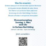 Weitere Informationen zur Veranstaltung finden sich in der Einladung sowie im Veranstaltungsflyer im Anhang. Hier finden Sie auch die Terminankündigung. Eine Anmeldung ist erforderlich. Alle Details bei Termine auf der Website unter www.csu-bad-aibling.de.