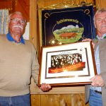 Foto: Hötzelsperger – Peter Freund (li.) und Rudi Lutz bei der Übergabe der Ehrentafel