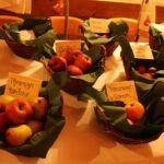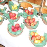 Bericht und Bilder: Thomas Schwitteck – Foto zeigen Nr 43 und 54 Auswahl der vielen heimischen Apfelsorten- mit Vorstand Perret hinten stehend