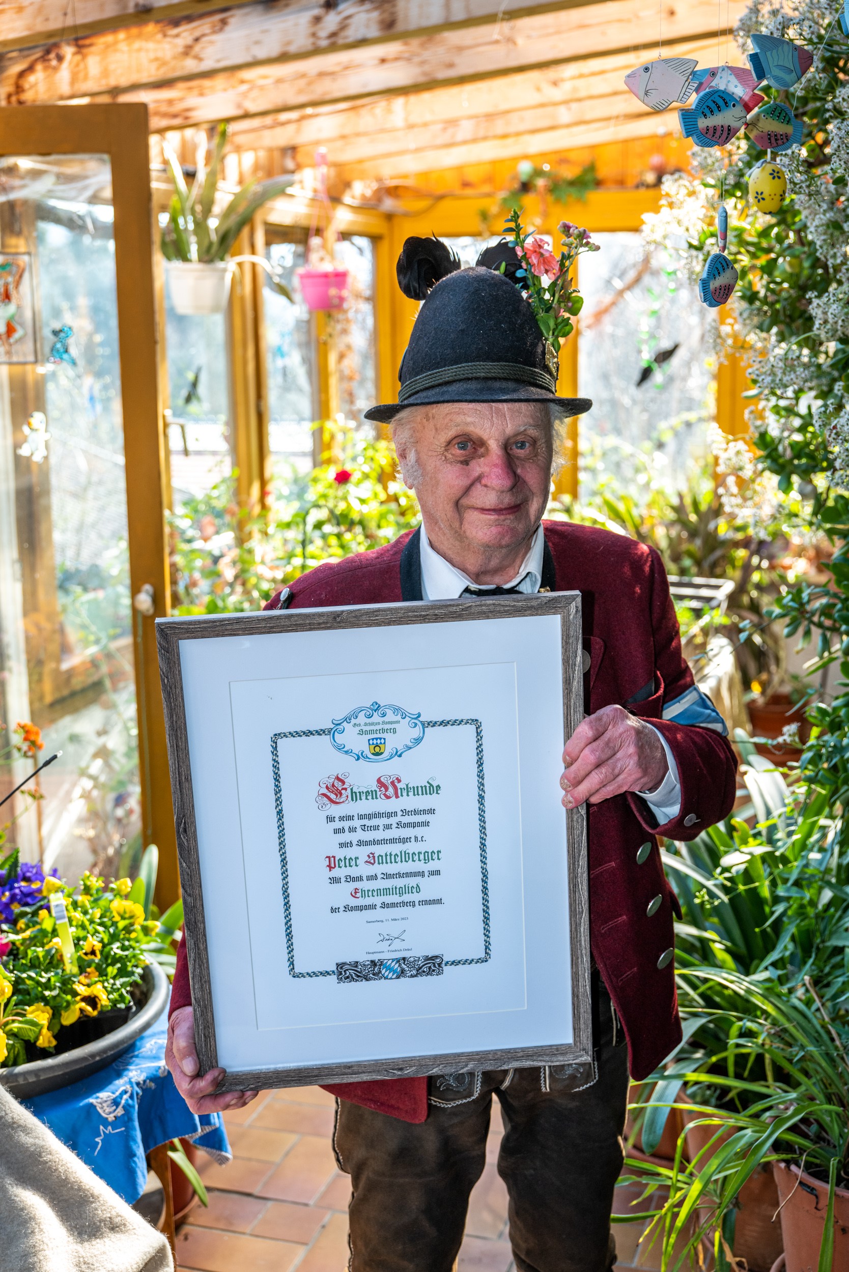 Neues Ehrenmitglied Peter Sattelberger mit Ehrenurkunde