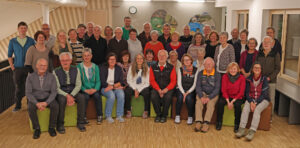 Waldführerinnen und Waldführer stellten sich am Ende noch zusammen mit dem Umweltbildungs-Team des Nationalparks zum Gruppenfoto in der neu entstandenen Empore des Jugendwaldheim-Speisesaals auf. (Foto: Gregor Wolf / Nationalpark Bayerischer Wald)