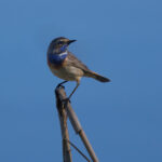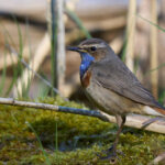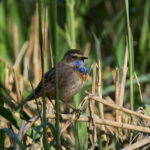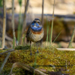 Der 27. April war ein echter Blaukehlchen-Glückstag am Beobachtungsturm der Hirschauer Bucht. Normalerweise brüten die Blaukehlchen eher im Grabenstätter Moos in den ausgedehnten Schilfflächen. Dort hört und sieht man sie zwar regelmäßig, aber es ist ziemlich schwierig auf eine fotografisch brauchbare Entfernung an sie heranzukommen. Bevor sie beginnen zu brüten machen sie allerdings oft eine Stippvisite zum Turm und dort konnte man mindestens drei Exemplare (zwei Männchen und ein Weibchen) aus teilweise kürzester Distanz (3m) beobachten. Sie ließen sich durch die begeisterten Fotografen auch überhaupt nicht stören und gaben ihr bestes uns jede Menge guter Fotos zu ermöglichen.