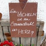 Oft ist es ganz einfach, seine innere Zufriedenheit zu finden – manchmal hilft ein Tipp am Wegesrand oder bei ideenreich und nett geschmückten Häusern – wie diese Aufnahme zeigt mit dem Spruch: “Ein Lächeln ist ein Sonnenstrahl ins Herz” – leider geht jedoch in Corona-Zeiten bei Maskenpflicht ein Teil des Lächelns und des Sonnenstrahls unter.