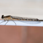 Als ich in der Früh mein Bett auf den Kleiderständer legen wollte, staunte ich nicht schlecht: die Stelle war bereits von einer Libelle, der kleinen Gemeine Becherjunfger besetzt. Vermutlich ein immatures Weibchen (Wikipedia: Ornithologie: noch nicht vollständig ausgefärbt, aber auch nicht mehr im Jugendkleid. Gegenwörter: juvenil, adult). Sie blieb bis Nachmittag gemütlich darauf sitzen.
