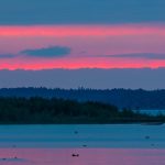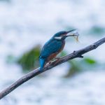 Am Spätnachmittag des 5. September war ich noch einmal an der Hirschauer Bucht, um während der angekündigten Gewitter Blitzaufnahmen zu machen. Ein jagender Seeadler verkürzte die Wartezeit. Schwere Gewitterwolken und einsetzender Regen verdunkelten den Himmel, sodaß der anfliegende Eisvogel nur mehr schemenhaft zu erkennen war. Moderne Digitaltechnik ermöglichte dennoch einige Bilder. Erstaunlicher Weise jagte nicht nur der Eisvogel Frösche, bei am Rande der Gewitterwolken durchscheinendem Abendrot, sondern auch der Seeadler löste noch einmal Panik unter den rastenden Wasservögeln aus.