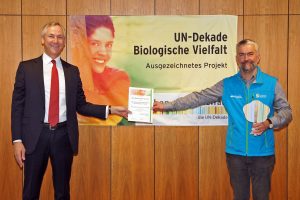 Die barrierefreien Bildungsangebote zur biologischen Vielfalt des Nationalparks Berchtesgaden sind ab sofort offizielles Projekt der „UN Dekade Biologische Vielfalt“. Der Amtschef im Bayerischen Staatsministerium für Umwelt und Verbraucherschutz, Dr. Christian Barth, überreichte die offizielle Auszeichnung im Sonderwettbewerb „Soziale Natur – Natur für alle“ kürzlich an Nationalpark-Leiter Dr. Roland Baier.