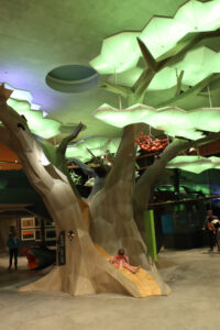 Zentrales Element der neuen Walddynamik-Dauerausstellung ist ein zweistöckiger Laubbaum, der mit LED-Technik beleuchtet wird.
