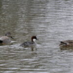 Dieser kleine Säger war weniger ängstlich und man kann anhand der beiden Schnatterenten auch gut die Größe des Zwergs abschätzen.