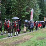 Gläubige aus der weiten Umgebung nahmen an der 49. Sachranger Wallfahrt teil. Trotz widriger Wetter- un Wegverhältnisse zog ein Wallfahrtszug von Aschau nach Sachrang und kam pünktlich zum Gottesdienst an. Fahnenabordnungen aus Bayern und Tirol, Gebirgsschützen, Traditions- und Trachtenvereine und die Feuerwehren umstanden den reich geschmückten Altar an der Ölbergkapelle nahe der Grenze zu Tirol. Die Ehrenkompanie der Gebirgsschützen stellte in diesem Jahr die Tiroler Schützenkompanie Niederndorf unter dem Kommando von Schützenhauptmann Hannes Schwaighofer. Aus Bayern waren die Gebirgsschützenkompanien aus Aschau, Bad Endorf und Bernau mit dabei, aus Tirol die Kompanien und Einheiten der grenznahen Orte. Gebirgsschützenhauptmann Hubert Stein von der Aschauer Gebirgsschützenkompanie begrüßte noch vor dem Festgottesdienst zusammen mit dem Vorsitzenden des Müllner Peter Freundeskreises Dieter Höpfner und Bürgermeister Simon Frank den Diözesanbischof von Innsbruck Hermann Glettler an der Kirche Sankt Michael in Sachrang und stellte die Front der angetretenen Schützen-Formationen mit ihren Hauptleuten vor.